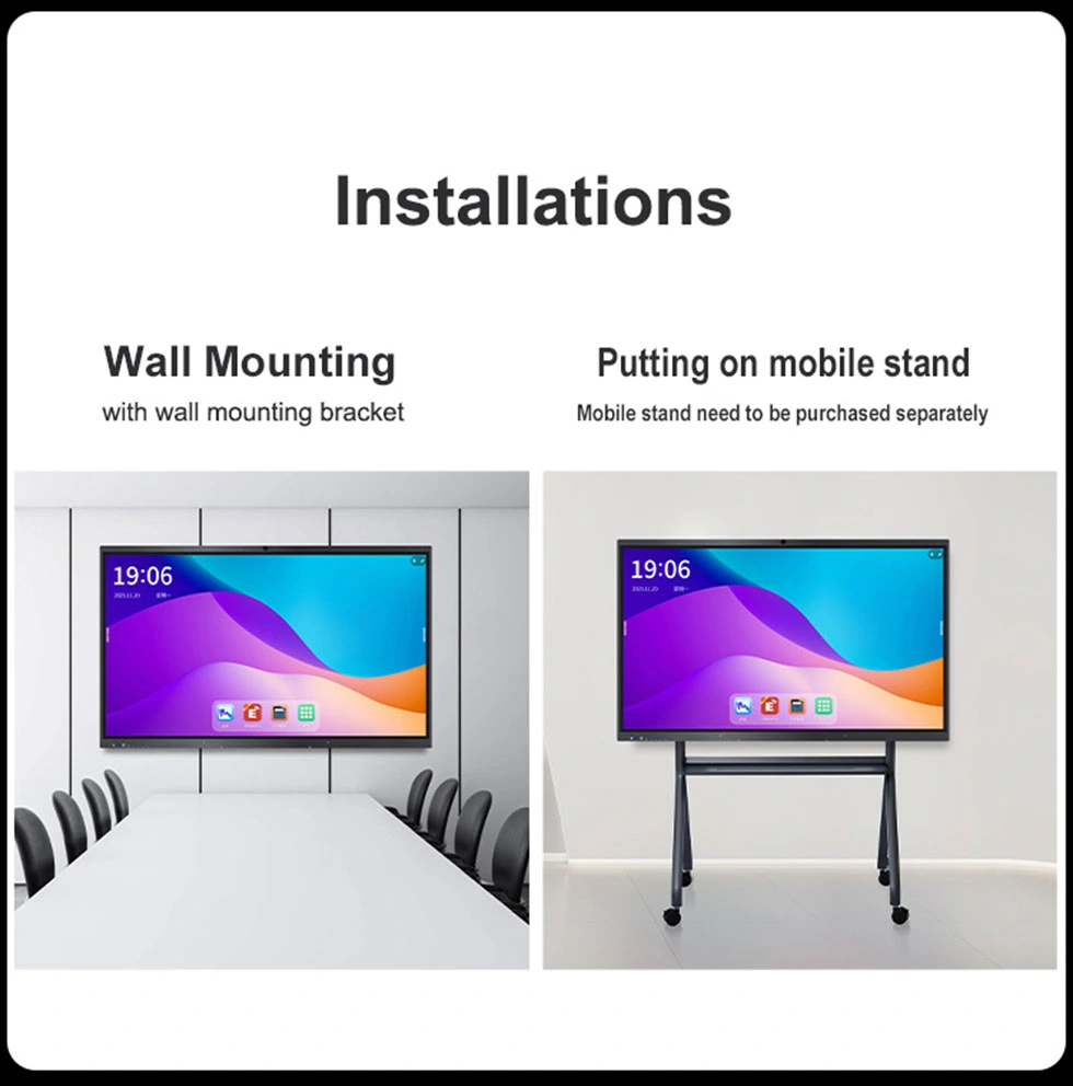 Experience smooth writing, wireless collaboration, HD visuals, and all-in-one smart office convenience with the infrared touch RK3588 interactive display.