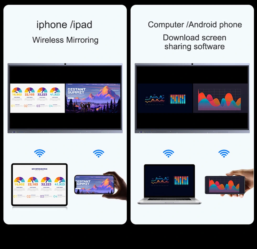 This cable-free solution offers broad device compatibility and crisp, synchronized projection. It enables multi-user screen sharing with interactive reverse control for seamless sharing of videos, music, and documents.